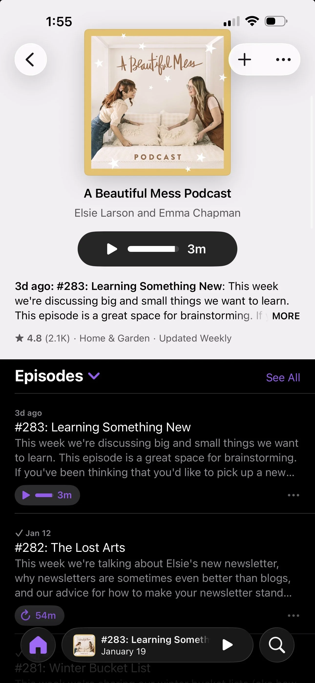 “Cozy, comfort listen” is pretty much exactly what I want out of a podcast. I love these ladies, because they have all the crafting, cooking, home decorating content, but they are also full fledged artists and novelists. As a musician, who brings her creativity into homemaking, I relate to them big time! Their podcast is SO bingeworthy. From the goal setting, the deep dives, the seasonal bucket lists, it’s all so good. Check it out.
